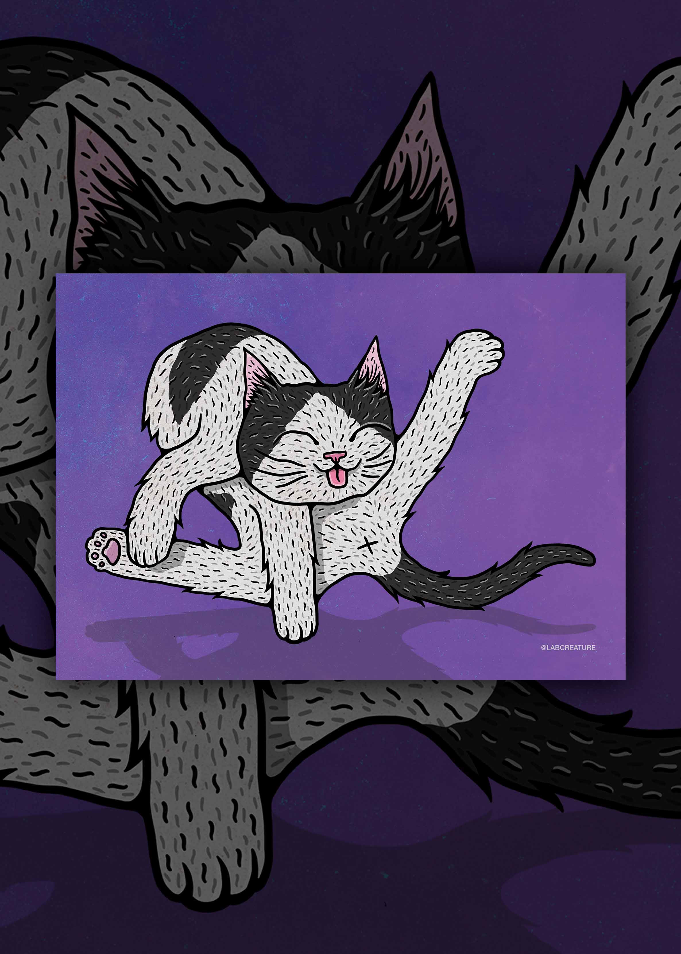 Our Butt Licking Cat Art Print is sure to put a smile over your face (and visitors), with a pose that's totally familiar to us cat owners.